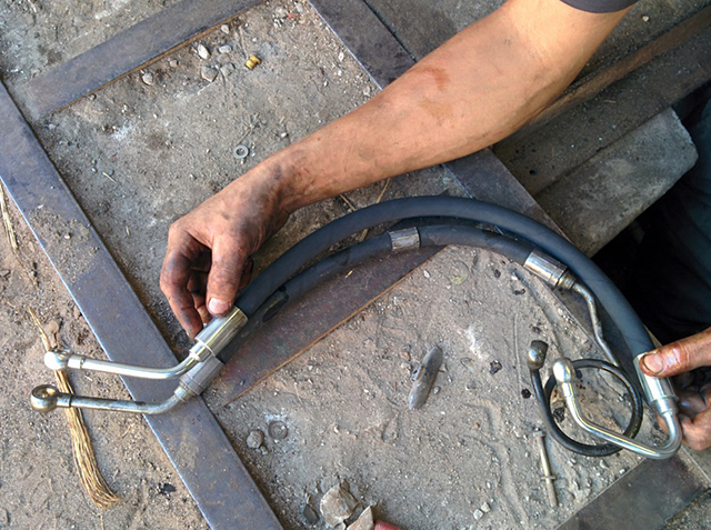 1. Демонтируете вышедший из строя шланг гидроусилителя (самостоятельно или в автосервисе). Убедитесь, что при демонтаже сохранилась рабочая геометрия шланга, использовался качественный ремонтный инструмент.